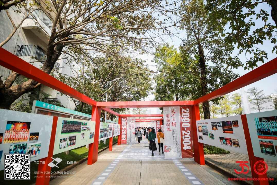当天,适逢宝安中学建校35周年,夭夭桃李济济一堂,追忆同窗旧事,畅叙师生情谊。嘉宾校友在“时光隧道”里流连忘返,在“怀旧教室”和“宝中小卖部”前驻足留念。那一张张旧色的胶片,晕染着宝中人的奋斗岁月;那一排排整齐的桌椅,勾起了校友们的美好回忆。