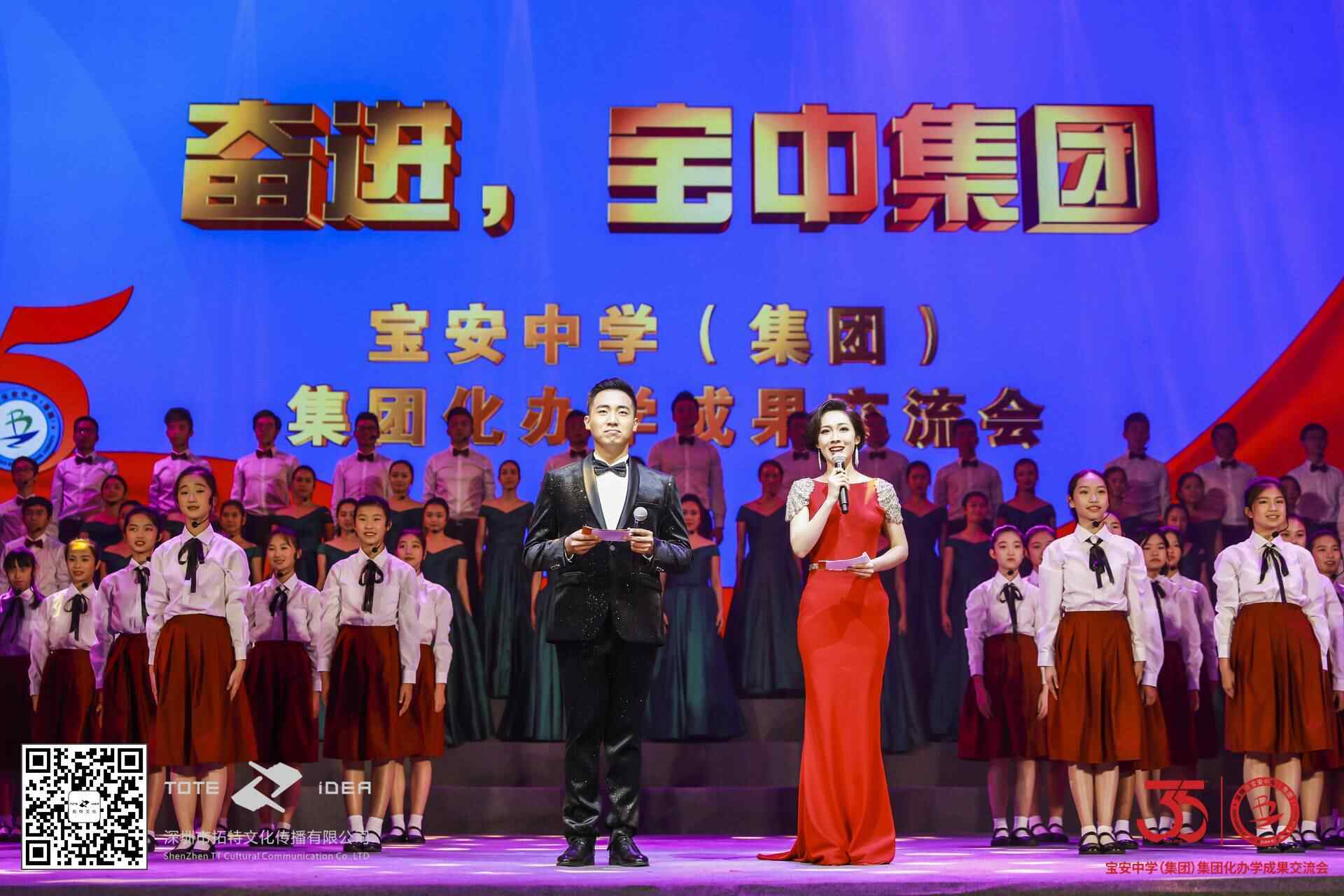 接下来的文艺演出为宝中师生、返校校友和到校嘉宾带来了一场激情洋溢、情怀深沉的视听盛宴。此次演出以“奋进,宝中集团”为主题,分为“不忘初心”和“砥砺前行”两个篇章,深情回顾宝安中学自建校至今的光辉历程,全面展示学校教育的丰硕成果。参与演出的680名演员全部是宝中在校师生和校友,他们用真挚的情感和精彩的表演带领场内外观众重温了一段段感人至深的过往故事,回忆了一个个激动人心的收获时刻。汇演活动由该校曾参与2008北京奥运会开闭幕式编导的穆青老师担任总导演,整场演出,舞台设计高端大气,节目编排巧妙精美,演员的倾情演绎媲美专业水准,尽显宝中品位与风采。