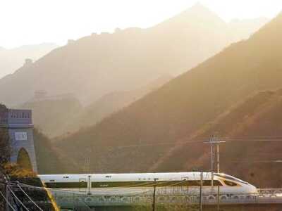 12月30日,G2418次列车驶过居庸关长城 新华社发