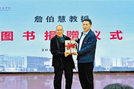 “这些赠书,不仅丰富了学校图书馆的藏书资源,同时也让更多读者在图书馆共享和利用这些宝贵的文献资源。”据韩师校方的相关负责人表示,该校当天又荣幸收到了詹伯慧教授捐赠的《汉语方言学大词典》《詹安泰词学论集》等图书2300多册。学校在对詹教授的赠书做好加工整理后,将在该校文学与新闻传播学院设立研究室冠名收藏。