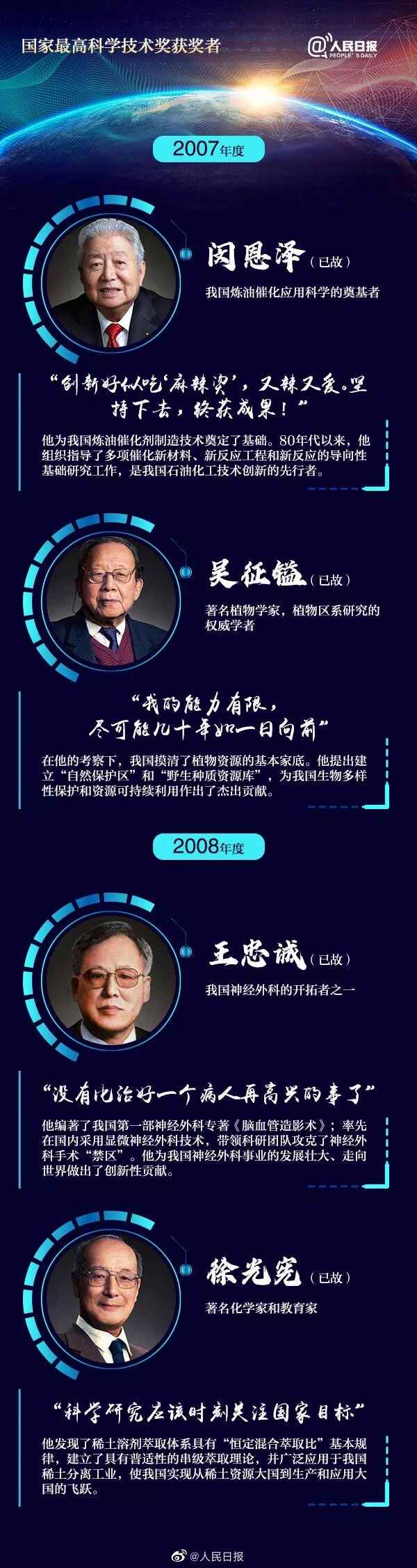回顾历届国家最高科学技术奖获奖者全名单 ↓↓