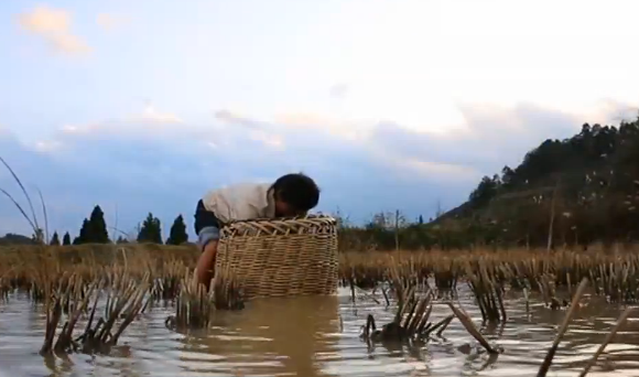 小寒时节,贵州迎来了难得的冬日暖阳。清晨,黔东南州凯里市翁当村的村民吴朝标在朝霞的映照下,开始在水田里放水捉稻田鱼。2019年,是吴朝标第一次养稻田鱼。年前,他的鱼已基本卖光,今天他要把最后的几十斤鱼送到凯里市里去卖掉。