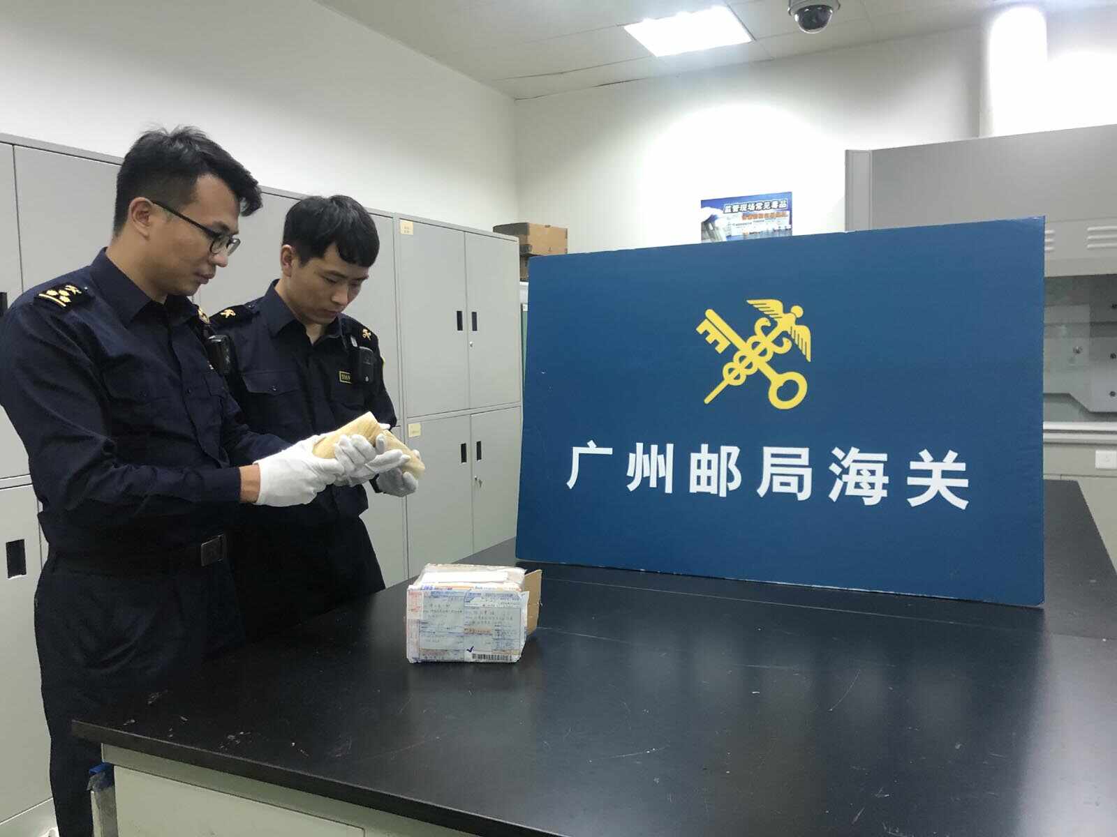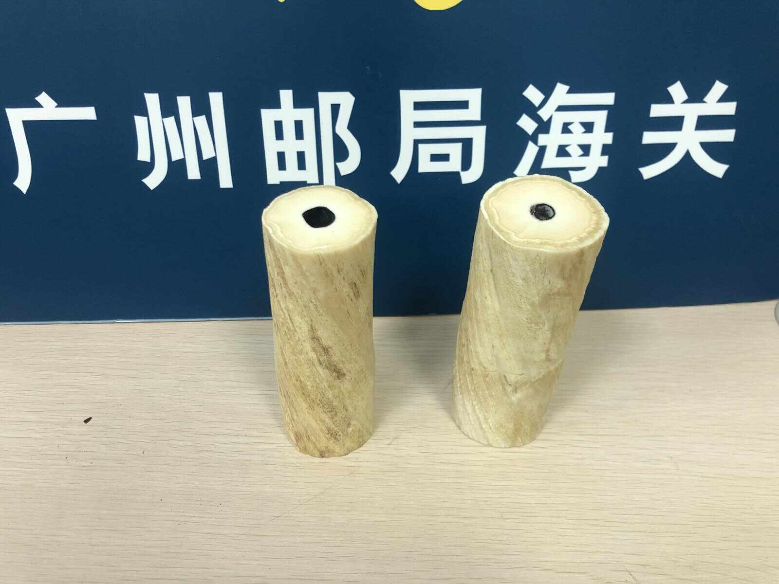 据介绍,当天广州海关所属广州邮局海关关员在对进境邮件实施监管时,发现1件从日本寄往广州的邮包机检图像存在异常。“该邮包申报品名为‘手柄’,品名较为模糊,过机图像显示为两件圆柱型物品,形状并不规则。”广州邮局海关邮递物品监管科副科长李勇说。随后,现场关员开箱查验发现,邮包内装有两段疑似动物骨骼制品。
