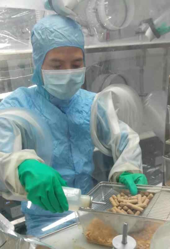 中山大学附属第一医院无菌动物研究平台商海涛博士介绍,老鼠和我们人一样,皮肤以及腔道内都是有各种细菌的,但是无论是人还是鼠,子宫内都是无菌的。普通鼠妈妈分娩时,若采用剖宫产,手术是在隔离环境内进行,剖出的鼠宝宝一出生就住进繁育隔离器里,它的整个生长过程都是在绝对无菌的环境内,包括它吃的饲料和饮用的水都是灭菌后,通过传递仓送到隔离器内的。这样经过七到八周后,鼠宝宝就成年了,可以用于医学实验了,第一只无菌小鼠就是这样诞生并养成的。