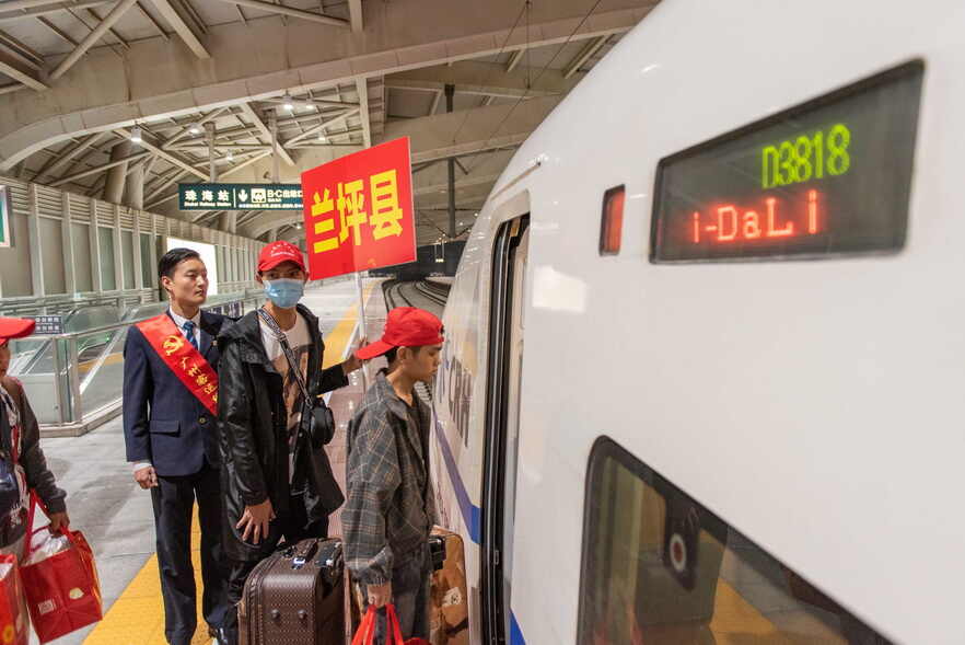 据介绍,本次列车是广铁集团首次与珠海市人社局、中国铁路昆明局集团有限公司合作,开行以独龙族、傈僳族、白族为主的怒江籍在粤务工人员扶贫专列。该列车将于当日19时11分抵达大理站,对于还需换乘回怒江州泸水市六库镇或者兰坪县金顶镇的怒江籍务工人员,怒江州人社局专门提供爱心大巴,畅通回家之路。