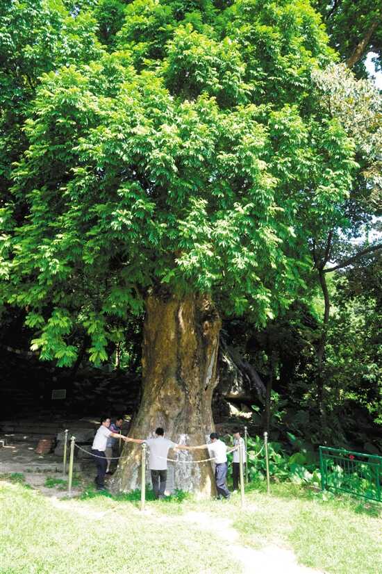 五人手挽手仍不能合抱的人面子树 罗浮山管委会供图