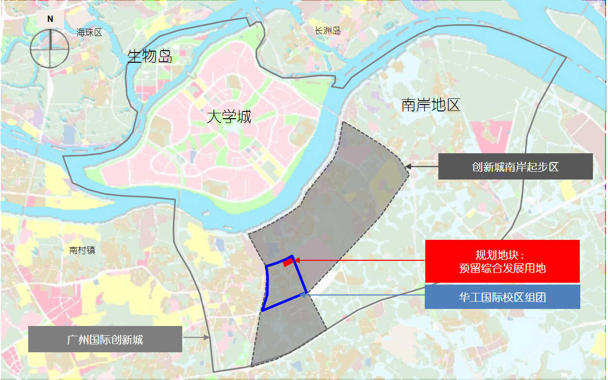 华工国际校区是由教育部、广东省政府、广州市政府和华工四方共建的市重点项目。2019年7月24日,第15届80次市府常务会审议通过了《华南理工大学广州国际校区二期土地出让配建模式实施方案》(下称《方案》)。2019年7月30日,市住建局印发实施《方案》,明确“出让校内原预留综合设施用地”,配建华工国际校区二期第一批工程”。市规划和自然资源局根据实施方案任务分工组织编制了华工国际校区组团预留综合发展用地控制性详细规划。