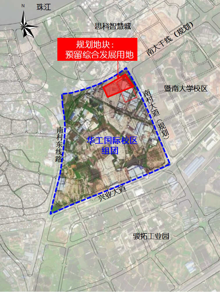 据悉,华工国际校区组团位于广州国际创新城南岸起步区,占地114公顷,北侧为思科智慧城,东侧为暨大校区,南侧为骏拓工业园。本次规划地块3.15公顷,位于华工国际校区组团东北角,北至南大干线(规划),东至南村大道(规划),现为空地,已移交代建局。