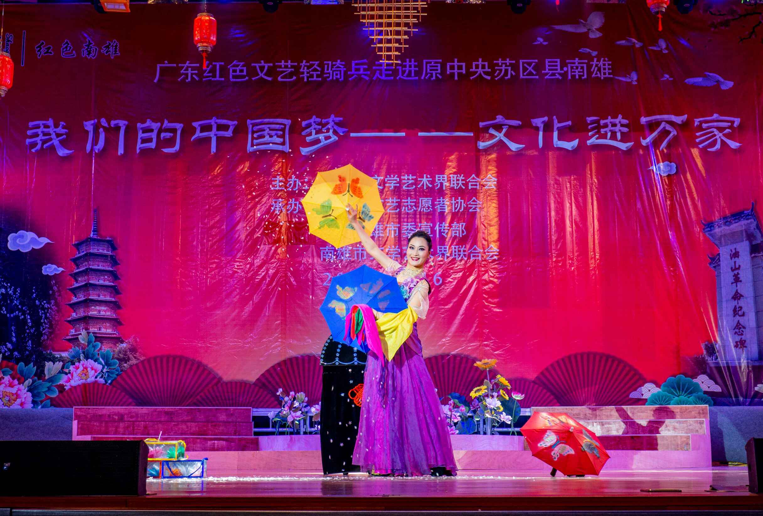 金羊网讯 记者黄宙辉,通讯员刘世华、王宏芳报道:近日,广东红色文艺轻骑兵一行30多人来到原中央苏区县——南雄,开展“我们的中国梦”——文化进万家“送春联、送书法、送幸福大片、送演出”文艺惠民系列活动,向当地群众派发“新春大礼包”。