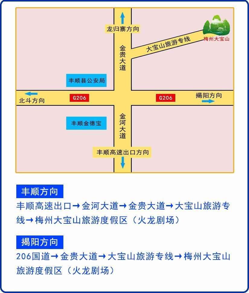 梅州大宝山温泉旅游度假区是由广东省新蓝天集团按国家A级旅游标准投资兴建,是一个以乡野文化为主题,集休闲、养生、娱乐、度假及温泉住宿为一体的大型综合性旅游度假区。度假区位于梅州市丰顺县汤坑镇,距离县城约3.8公里。