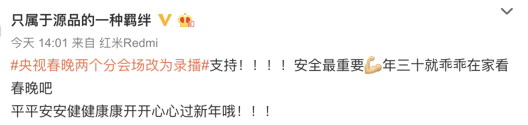 网民也纷纷呼吁:留在家中过年看春晚,做好自我保护↓↓↓