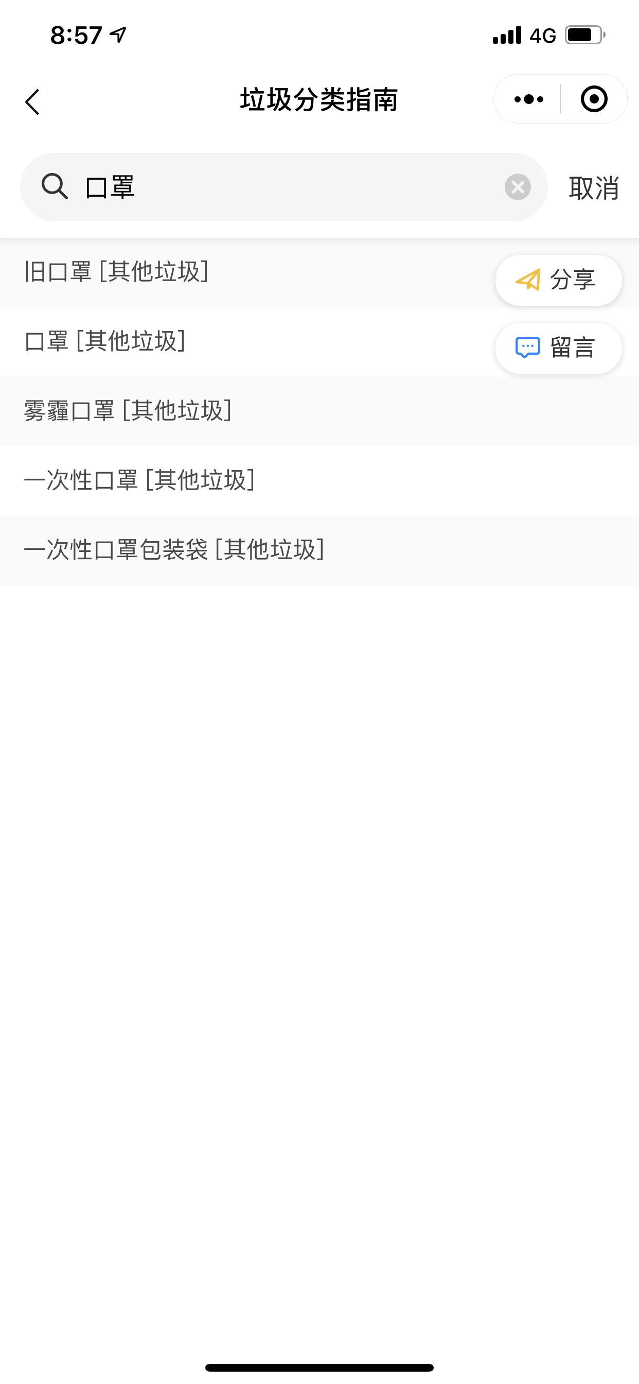 “垃圾分类指南”微信小程序,将口罩定义为“其他垃圾”