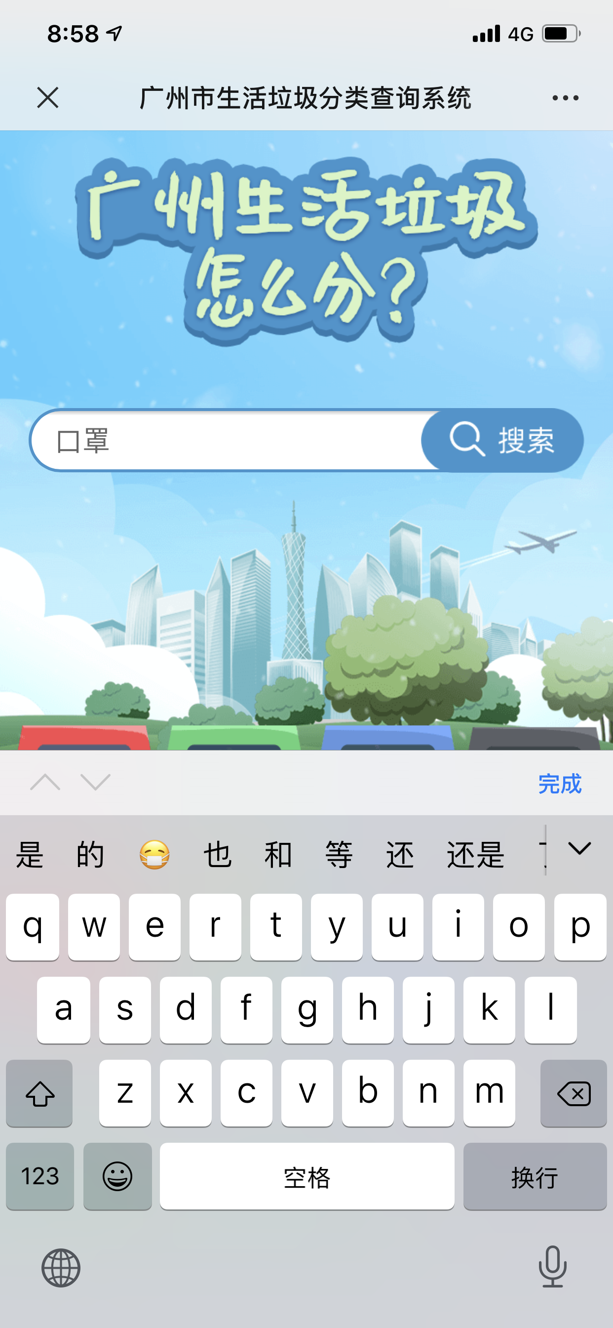 广州市城市管理和综合执法局研发的“垃圾分类羊城通”微信小程序,未将口罩收录