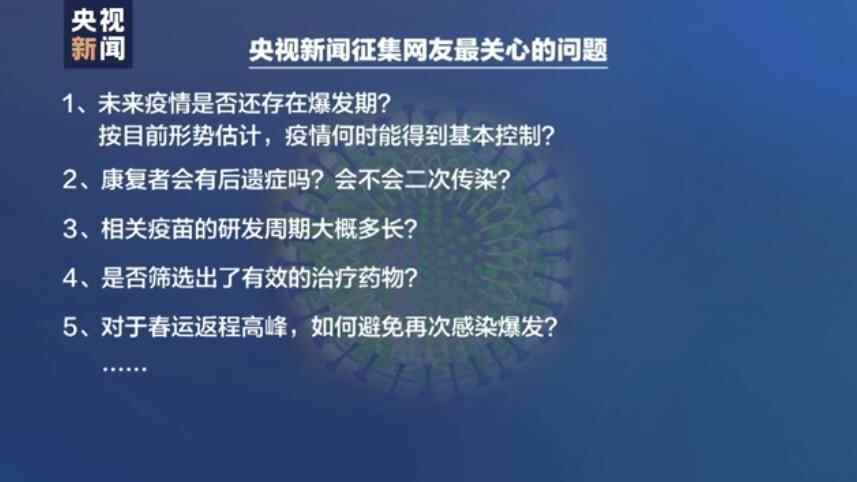 白岩松:今天央视新闻征集网友最关心的问题,排在第一位的就是:未来疫情是否还存在暴发期?按目前形势估计,疫情何时能得到基本控制?