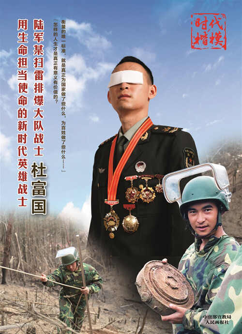 杜富国是陆军某扫雷排爆大队战士。入伍以来,他始终把忠诚和信仰刻在心中,把使命和责任扛在肩上,主动请缨征战雷场,苦练精练过硬本领,为人民利益和边境安宁挥洒热血,在平凡岗位干出了突出业绩。2018年10月11日,杜富国随队参加排雷作业时,危急时刻冲锋在前,为保护战友身受重伤,失去双眼和双手。杜富国同志曾先后获得“全国自强模范”“感动中国十大人物”、陆军“四有”新时代革命军人标兵等称号,荣立个人一等功。【详情】