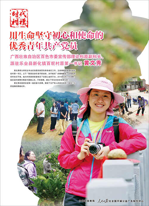 黄文秀同志生前是广西壮族自治区百色市委宣传部干部。2016年硕士研究生毕业后,黄文秀同志自愿回到百色革命老区工作,主动请缨到贫困村担任驻村第一书记。她时刻牢记党的嘱托,赓续传承红色传统,立下脱贫攻坚任务“不获全胜、决不收兵”的铿锵誓言。她自觉践行党的宗旨,始终把群众的安危冷暖装在心间,推动实施百坭村村屯亮化、道路硬化和蓄水池修建等工程项目,带领群众发展多种产业,为村民脱贫致富倾注了全部心血和汗水。2019年6月17日凌晨,黄文秀同志在突发山洪中不幸遇难,献出了年仅30岁的宝贵生命。黄文秀同志被追授“全国三八红旗手”“全国脱贫攻坚模范”等称号。【详情】