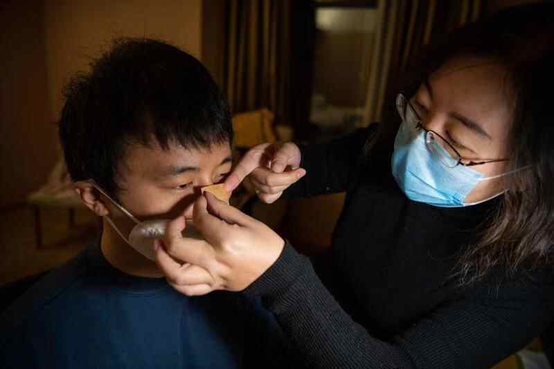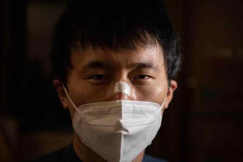 今天鼻梁终于没那么痛了。值班需要长时间戴防护口罩,但由于前线物资紧缺,并没有防压疮需要的水胶体。前几日,医疗队里很多人下了班,鼻梁都被压出了或大或小的伤口,轻轻碰一下,钻心地疼。