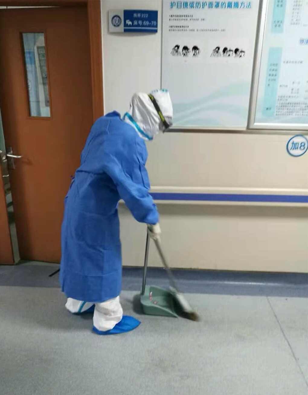 三名护士接班后开始忙碌的工作,清点夜班治疗液体,执行医嘱,有条不紊。爽欢在空闲时,还主动打扫病区。由于各项保障条件的缺乏,清洁、打扫等后勤工作,也都需要我们自己动手解决。