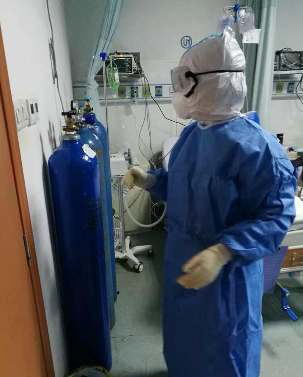 在病区里,穿着厚重的防护服,再加上层层密闭的口罩和护目镜,镜片上很快雾茫茫一片。我们只能在模糊中慢慢摸索,逐渐适应,提高工作效率。