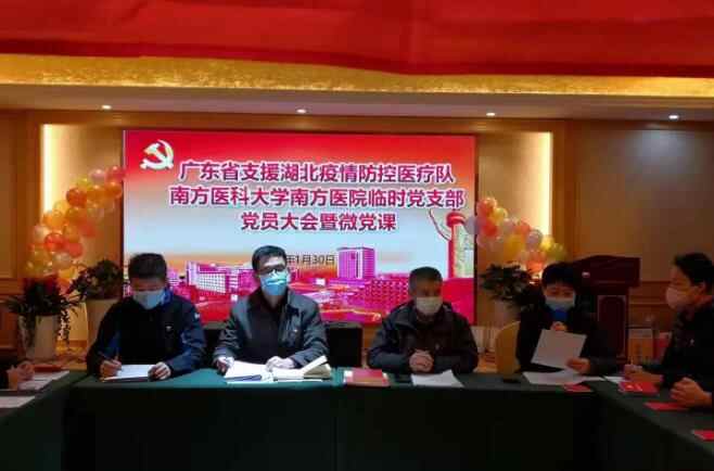这是南方医科大学南方医院援助湖北医疗队临时党支部,在武汉抗击新型冠状病毒疫情的最前线,召开的第一次党员大会。
