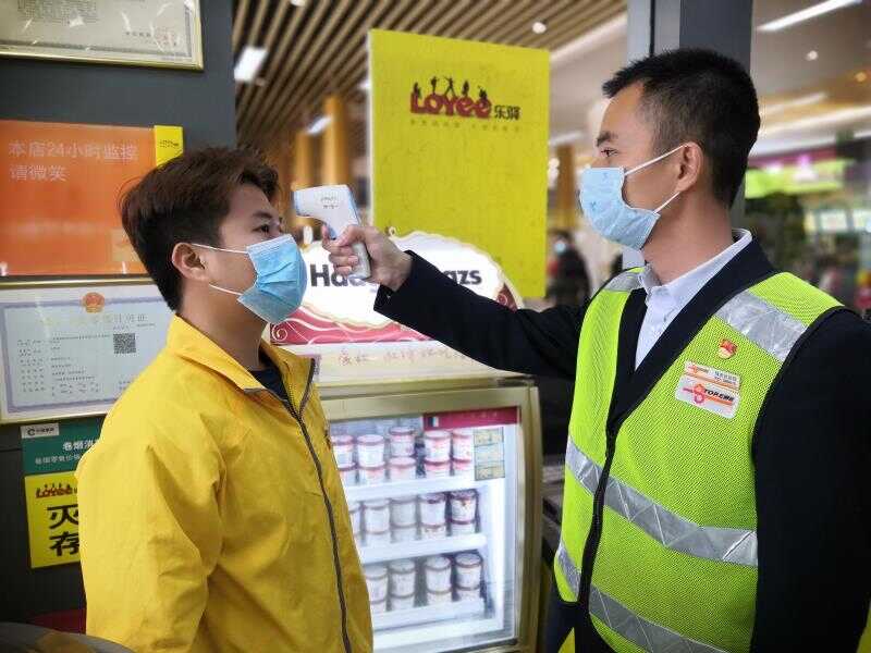 “口罩口罩,所有人员必须佩戴口罩!上班前一定要测体温,当班期间每两小时测一次,全体人员做好体温相互监测工作!勤洗手!勤消毒!”这是陈月琼每天都要反复对当班员工及商户强调的话。