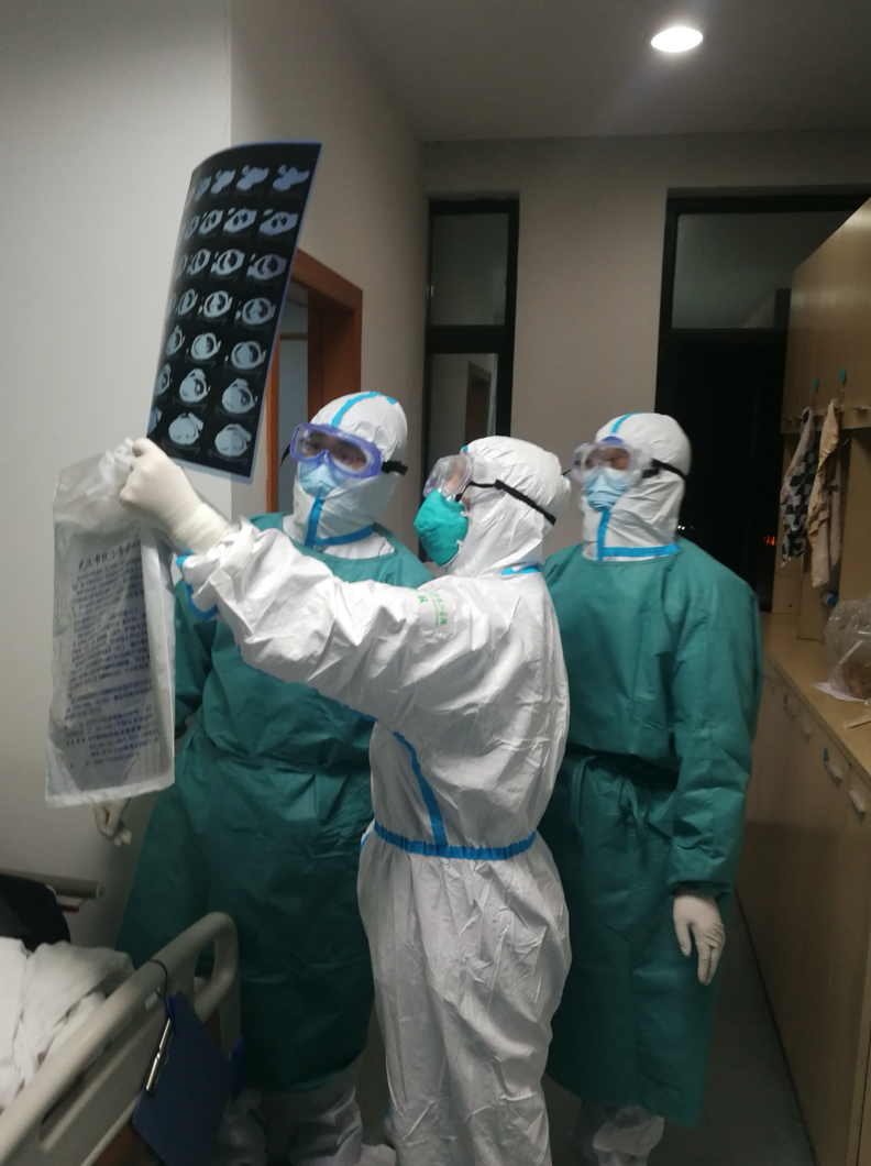 换好防护服,我们在胸前贴上了刚刚送到的珠江医院标签。这既提醒我们是一个团队,也在鞭策我们不能给大后方丢脸!
