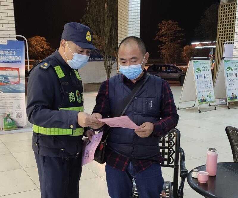 潮惠高速党员志愿者林勇明派发新型冠状病毒肺炎宣传资料。