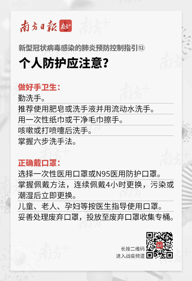 关于新型冠状病毒感染的肺炎防控,这12条指引请记好!