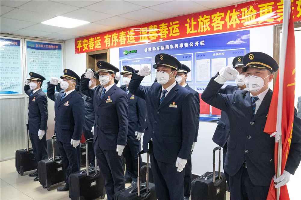 “坚决听从党的指挥!坚决保障高铁安全、坚决完成运输任务。”当天,临时党支部书记许伟峰领读誓词,突击队成员用铮铮誓言作出了团队庄严的承诺。仪式结束后,值乘G530次列车的司机丁志中办理出勤任务。14点12分,丁志中驾驶G530次动车从桂林北出发;16点53分,列车安全正点驶达长沙南站,圆满完成了“首发”任务。
