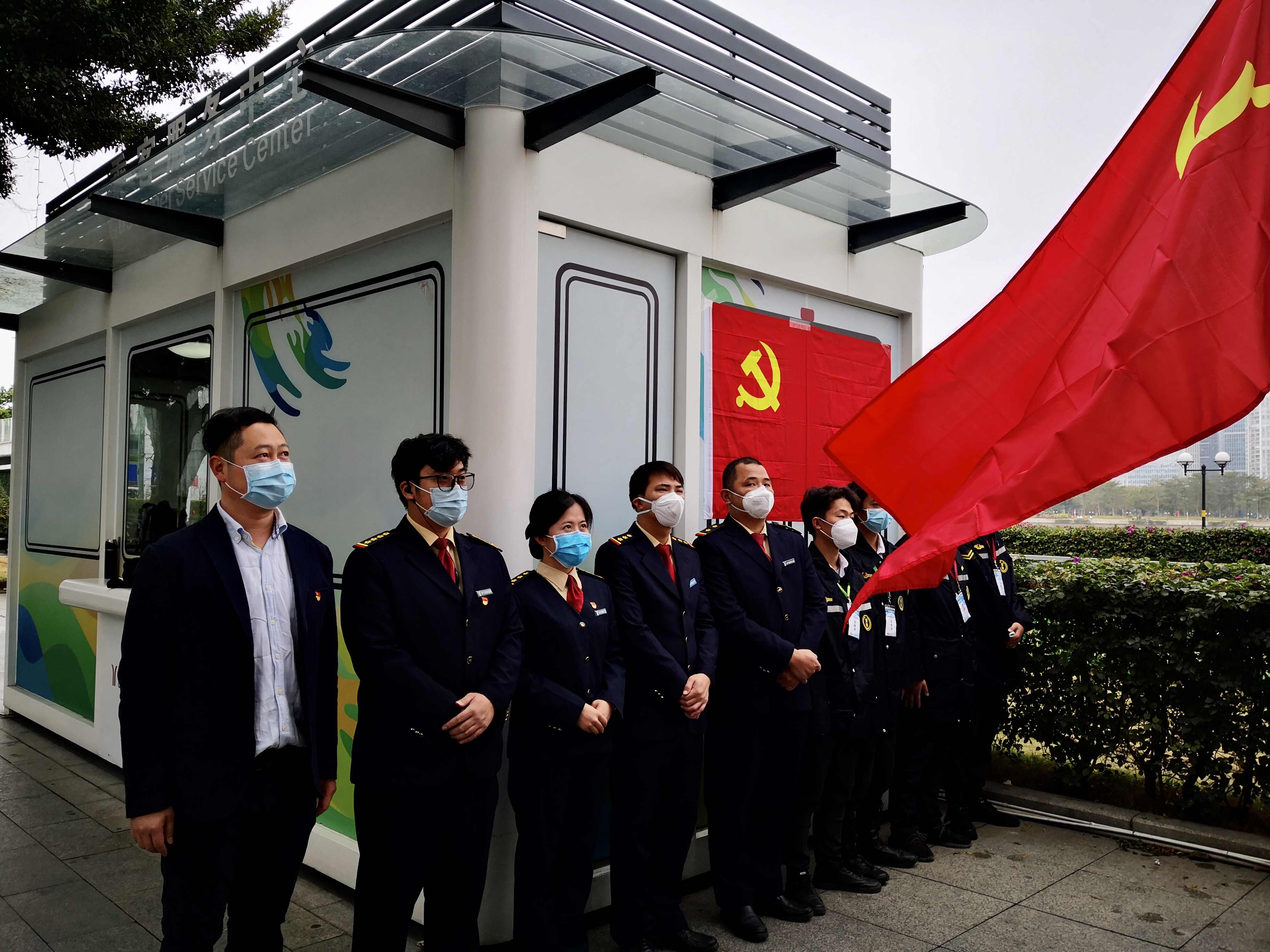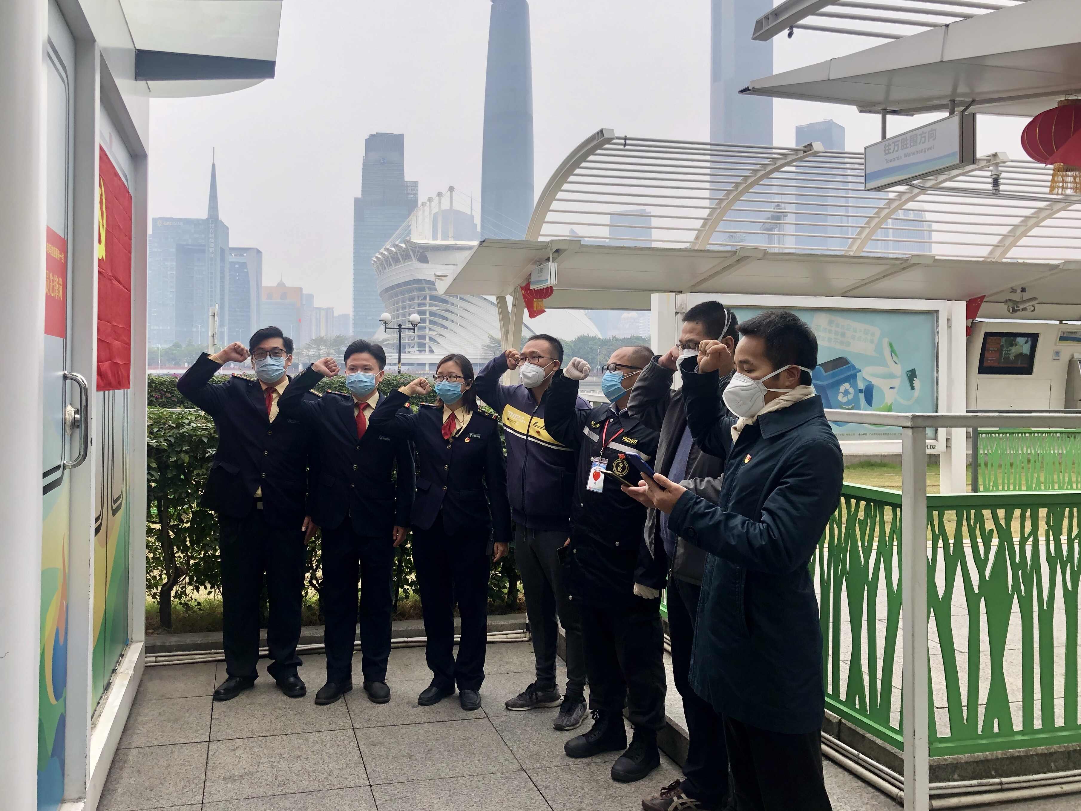 面对严峻复杂的疫情形势,广州地铁集团党委认真落实习近平总书记关于“让党旗在防控疫情斗争第一线高高飘扬”的重要指示精神,向集团437个基层党组织和近8000名共产党员发出了动员令。抗疫乘客服务第一线的运营管理部党支部是广州市星级党支部,也是地铁集团表彰的30个红旗党支部之一,支部紧密结合有轨运营特点和抗疫工作实际,迅速行动,在抗疫乘客服务一线设立“党员先锋岗”;在广州塔客服中心、琶醍换乘点、磨碟沙停车场调度大厅悬挂党旗;利用交接班时间,组织党员、预备党员、入党积极分子向党旗宣誓上岗,并邀请非党员员工见证、监督。