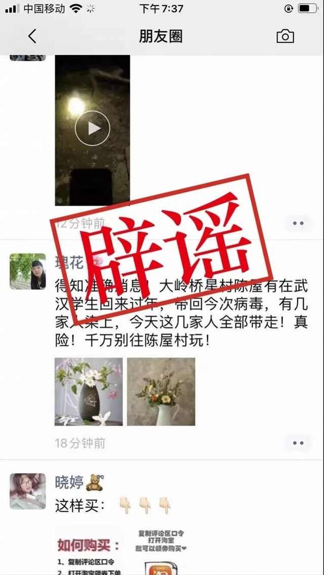 南都讯 记者黎秀敏 通讯员黄少卿 叶衍达 近日,网上流传“大岭街道桥星村陈屋村小组有从武汉返家的学生感染新型冠状病毒”等谣言,引起广大民众高度关注。此消息不属实!为此,大岭街道迅速反应,立即发声,进行官方辟谣。