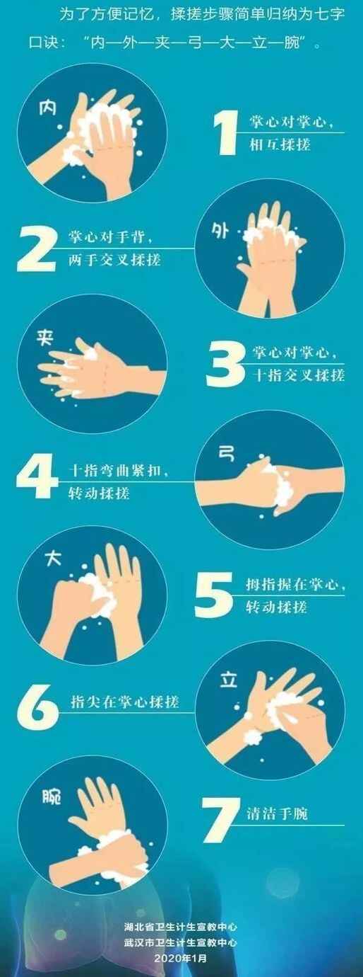 (1)无论家长还是孩子,都要勤洗手,保持手卫生。手会接触各种各样的病原体,2019-nCoV也在其中,洗手是明确的预防措施之一。使用肥皂和流动的清水,搓手不少于20 秒(参照医院的专业七步洗手法),可有效保持手卫生。出门在外不方便找到清水和肥皂,那么可以使用含有70%~80%酒精的免洗洗手液。
