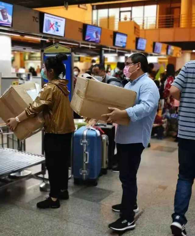 1月30日下午,DD3116航班从泰国曼谷飞往江苏南通,机上国家电网南通供电公司朱力家庭、如东供电公司黄文涛和陈海华3个家庭,包括9岁的娃娃都充当搬运工,随机搬回146箱防疫物资。