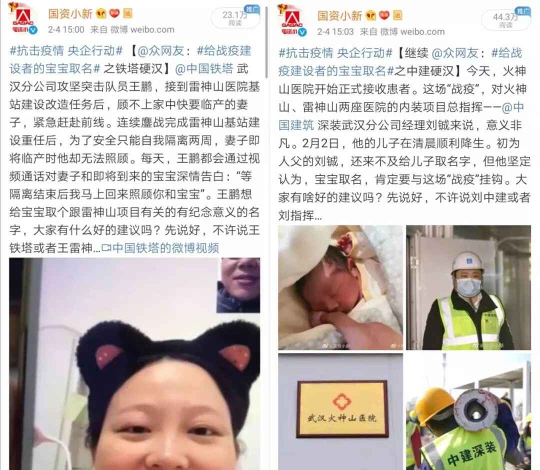 两位央企青年初为人父,还来不及给儿子取名字。但他们一致认为,宝宝取名,肯定要与这场“战疫”挂钩,取一个有纪念意义的名字!