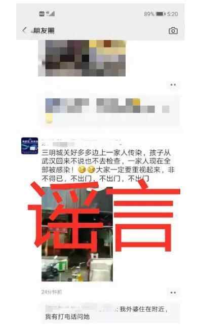 网传消息 有网民在微信朋友圈发布“三明城关好多多边上一家人传染”的信息。鉴定结果 谣言。陈某认识到错误,主动将朋友圈内不...