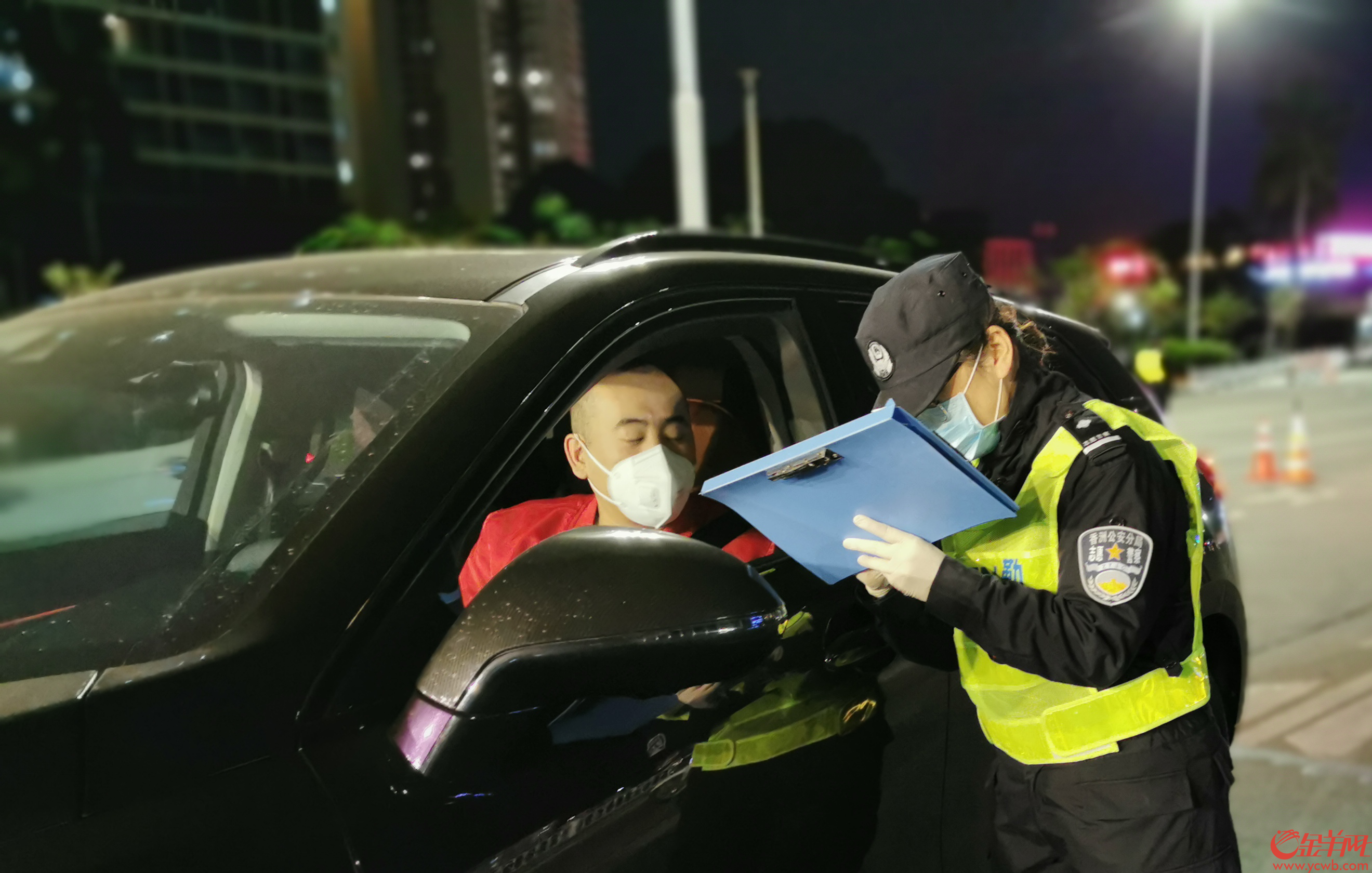 蒋梦执行任务的时间是晚上7点到12点,从测量体温到收集个人信息,再到协助对车辆消毒工作,每个环节她都一丝不苟。
