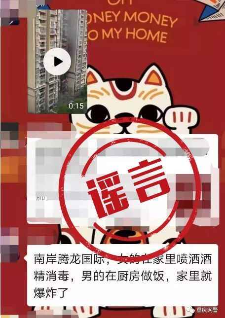 近日,重庆朋友圈疯传一小区居民楼起火的视频信息,并配文称,是因为家中女子在喷洒酒精消毒,引发了爆炸。经重庆网警核实,该视频实为武汉一小区居民楼发生爆炸,且起火原因并非是使用酒精。