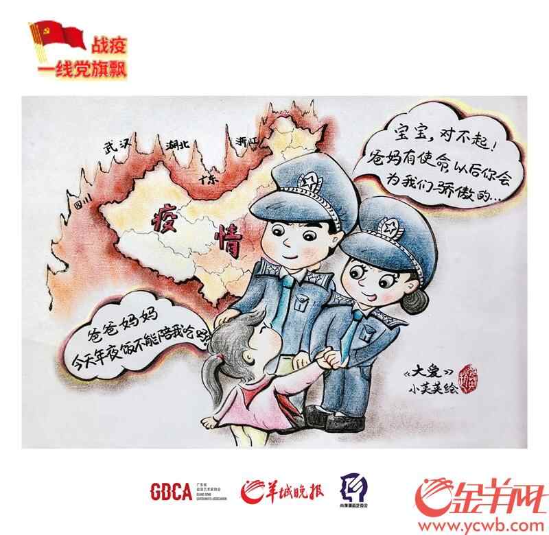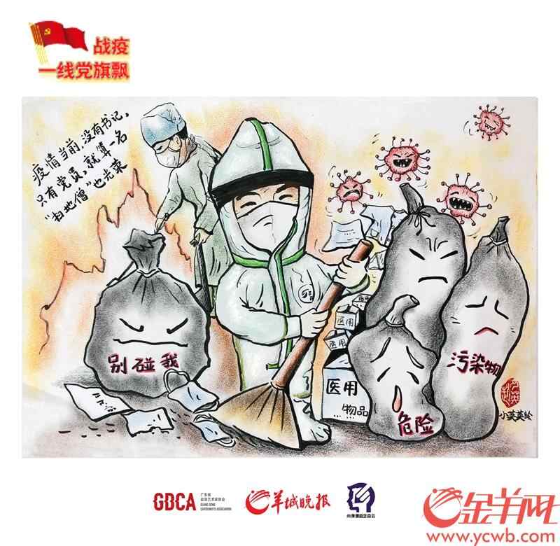 金羊网讯 记者黄宙辉 通讯员罗艳敏 李小兰报道:2月5日,“战疫一线党旗飘”系列漫画推出第四期,推出动漫艺术家小英英创作的两幅作品《先锋“扫地僧”》、《大爱》。“战疫一线党旗飘”系列漫画由广东省动漫艺术家协会、广州市动漫艺术家协会党支部与羊城晚报携手策划推出,反映和记录奋战在抗击新型冠状病毒感染的肺炎疫情第一线的故事。