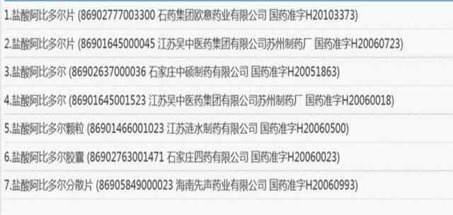 而记者通过国家药监局查询,目前经过审批通过的国产盐酸阿比朵尔的企业有6家,这6家企业分别是石药集团、江苏吴中、江苏涟水制药、石家庄四药、石家庄中硕药业、海南先声药业。