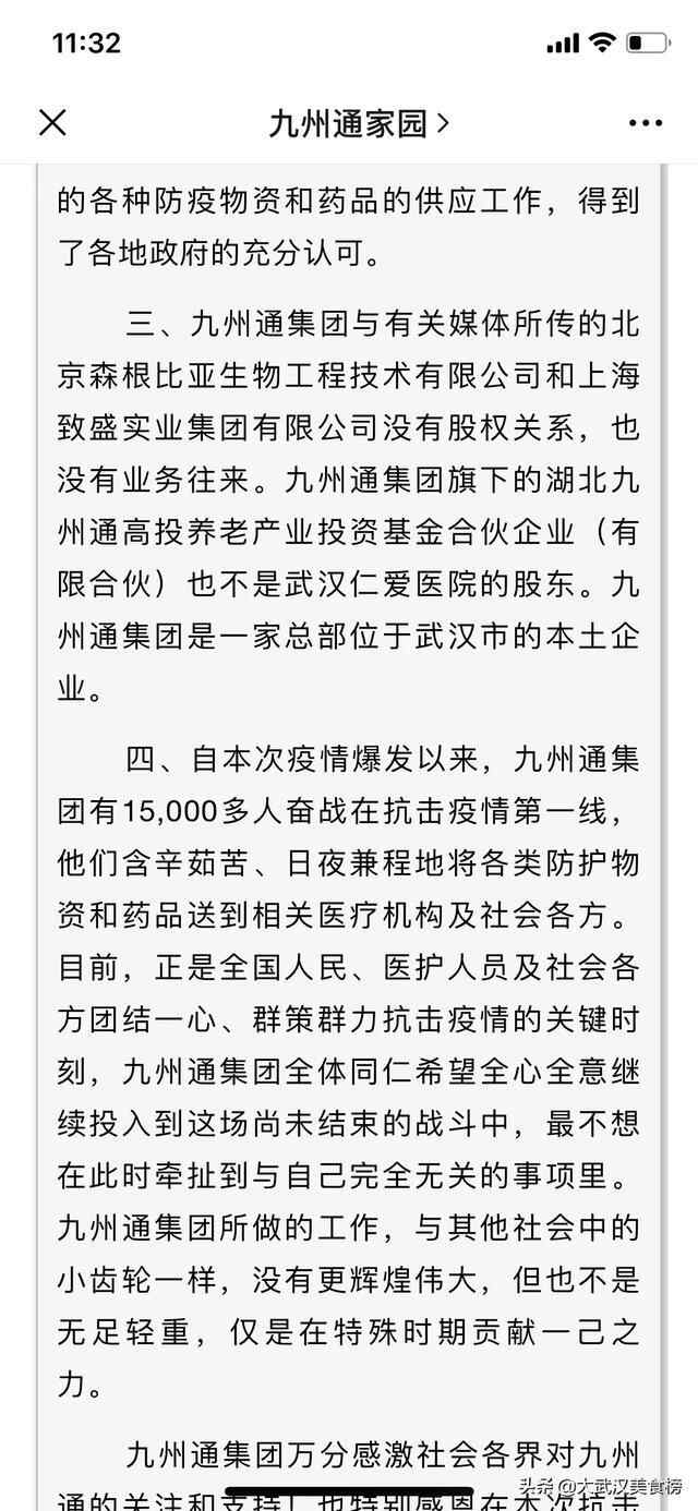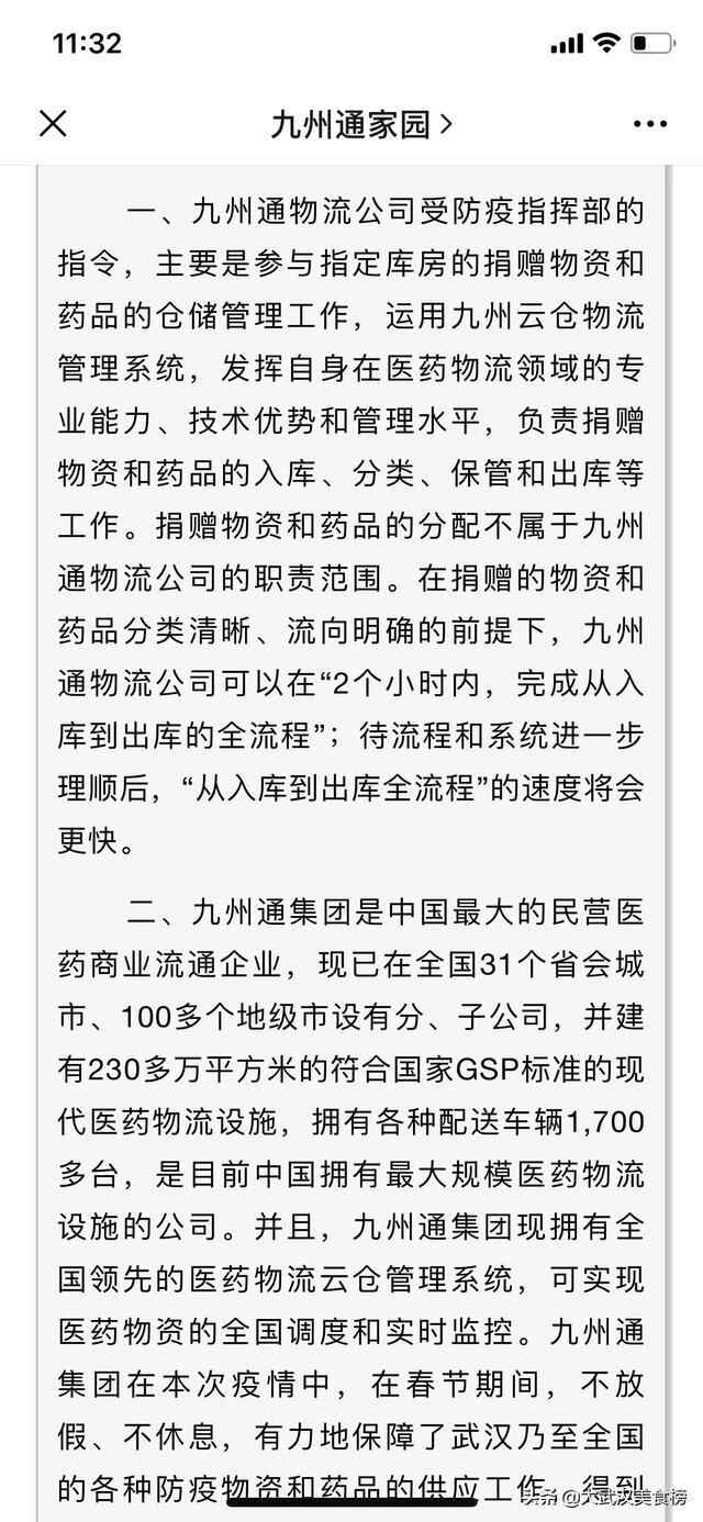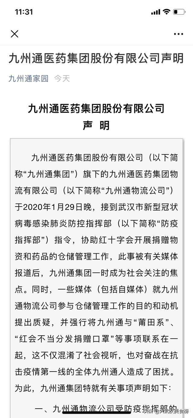 #全民共抗肺炎#针对莆田系,红十字会等有关的诸多质疑,九州通医药集团股份有限公司声明辟谣九州通物流公司于2020年1月2...