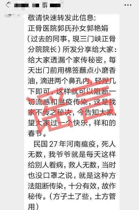 很多长辈因为担忧家人的健康,不时在群里发一些抵抗新型肺炎的“土方法”: