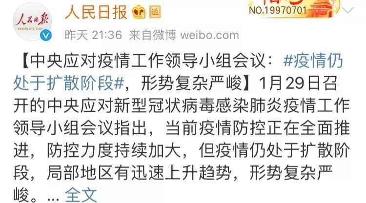 ▲人民日报1月29日微博