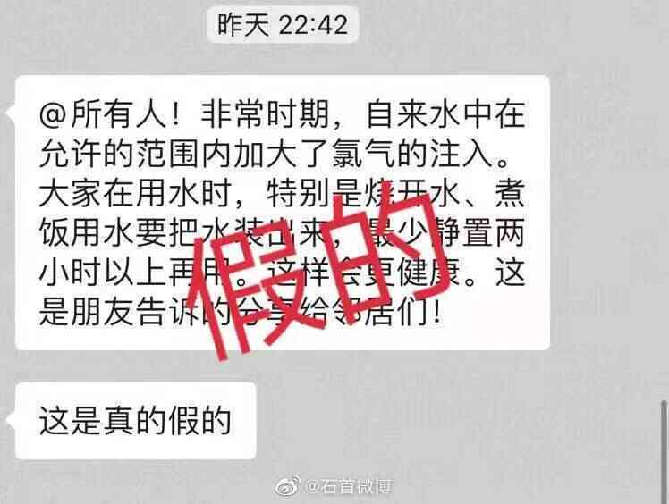 #全国确诊新型肺炎病例# #微博辟谣#今向自来水公司工作人员咨询,这是谣传