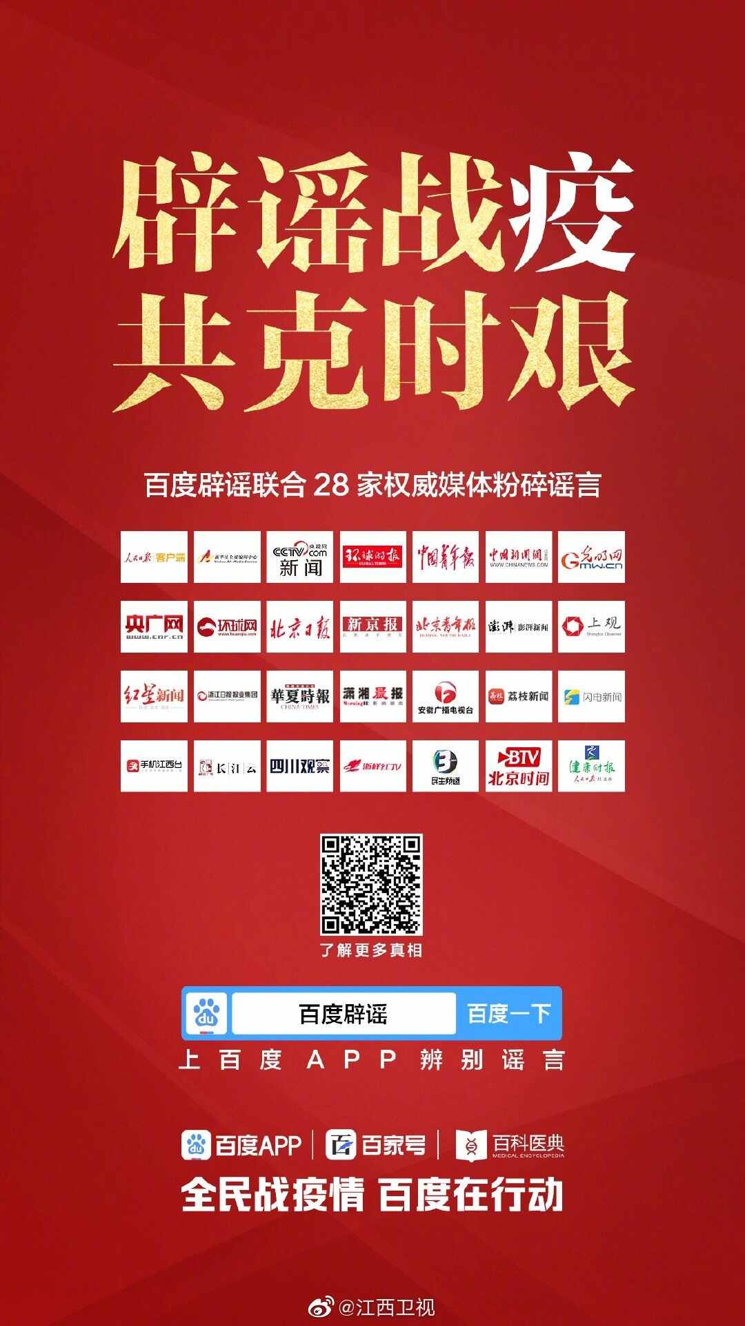 #抗击新型肺炎江西在行动# 面对疫情,我们要抗击的不只是病毒,还有谣言。不信谣,不传谣,手机江西台联合百度辟谣,打响辟谣...