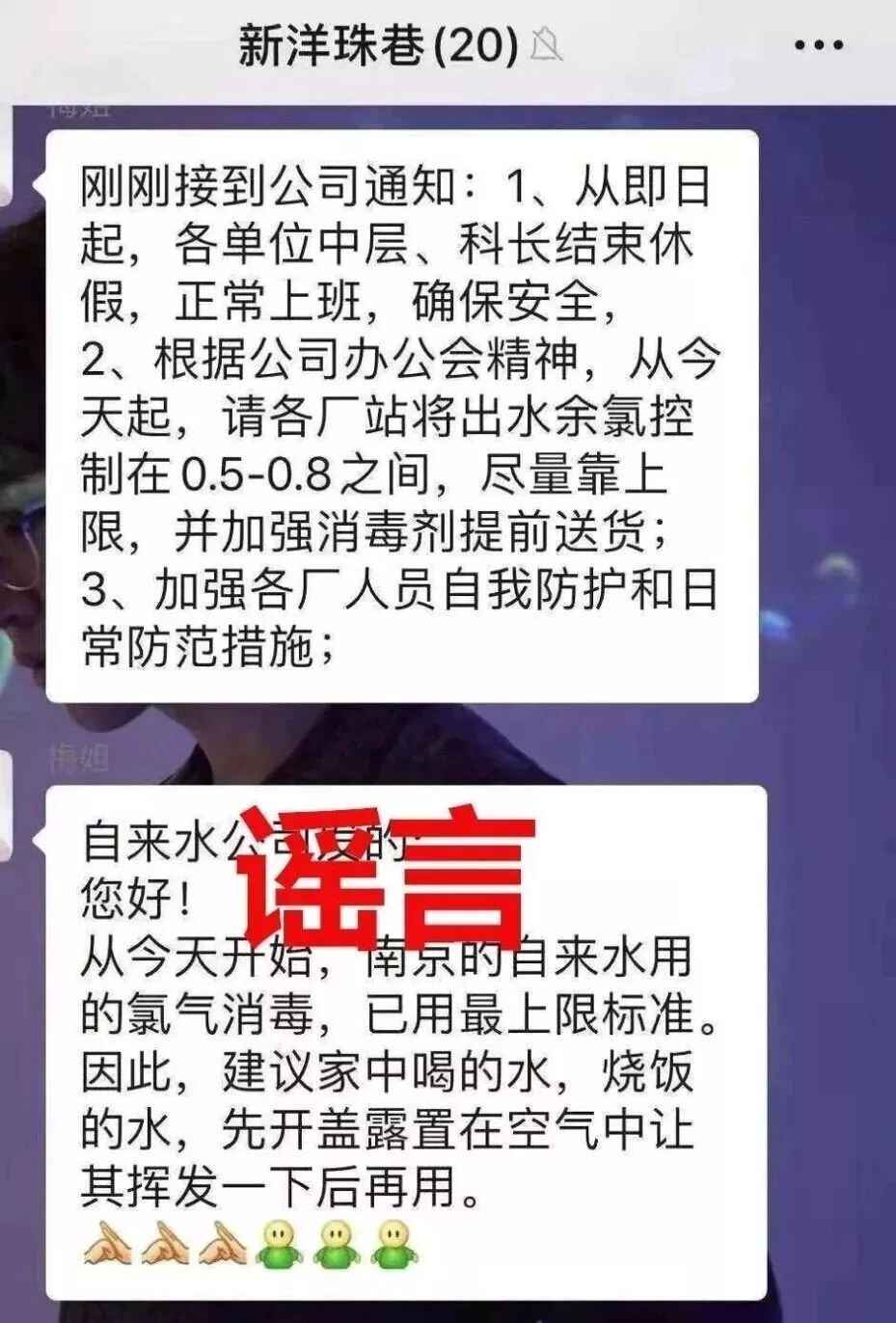 流传版本:“南京自来水氯气消毒已用最上限标准”“建议家中喝的水、烧饭的水,先开盖露置在空气中让其挥发一下后再用”。