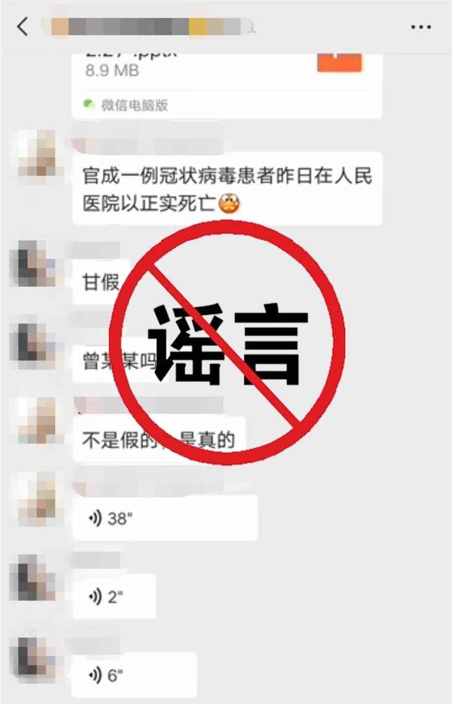 2020年2月3日,平南本地微信群中广泛流传一则信息称:“昨日被确诊发布的官成某新型肺炎患者今日被证实死亡”,一时间引起大量网民关注议论,造成社会恐慌。