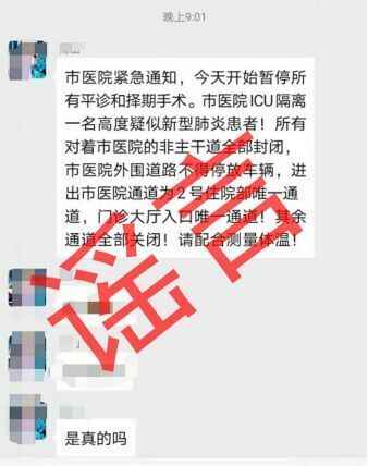 辟谣!“市医院ICU隔离一名高度疑似新型肺炎患者”系谣言