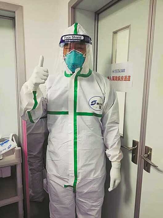 报到当日即是夜班,初到的慌乱已无暇顾及。我与危重患者之间的距离只有这层白色防护服。但我知道,能够与死神争夺生命的,就是我们!从初来报到的防护培训到熟悉新的HIS系统、新的工作流程和新的工作伙伴,仅仅数小时时间。踏入病房就意味着战斗的开始。