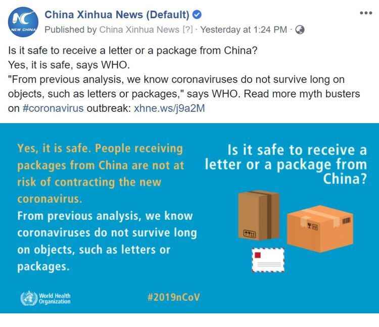 “接收来自中国的包裹将传染新型冠状病毒!”