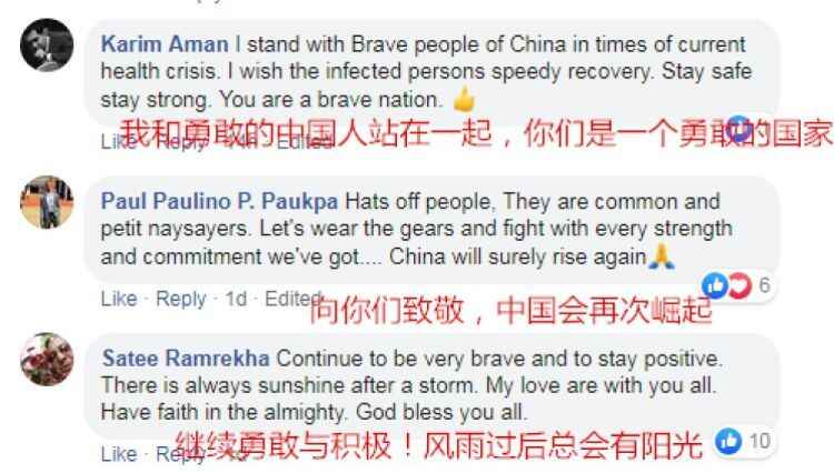在贴文下方,许多网友纷纷留言表示支持中国,谴责那些借抗击病毒之名行种族歧视之实的恶劣行径。